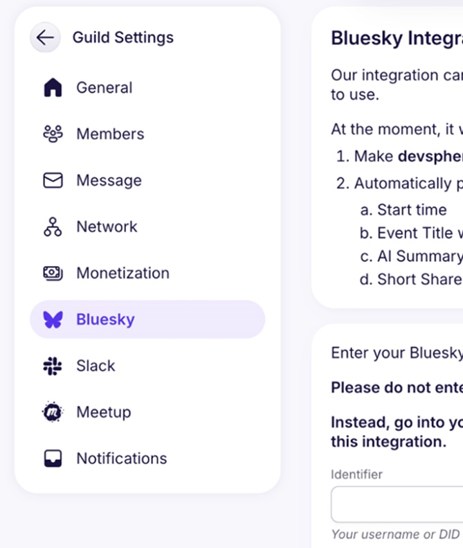 Now, whenever a new Event is Listed across your Guild or Network, we'll automatically post an announcement to your Bluesky that uses AI to entice folks to sign up!